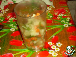 При помощи блендера доведите овощи до однородной консистенции. -