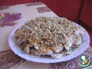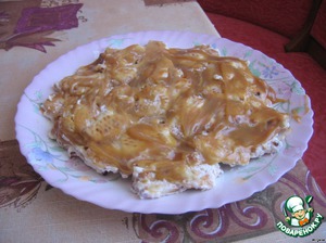 • Мой торт получается в три слоя. Верх промазываем сгущенкой и украшаем как вам захочется. Ставим на некоторое время в холодильник (охлажденный вкуснее).