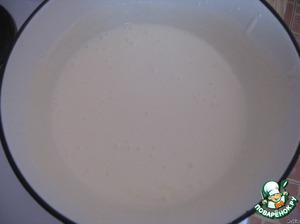 • Туда же выливаем сметану и тщательно размешиваем до однородной массы. Удобнее взбить миксером.
