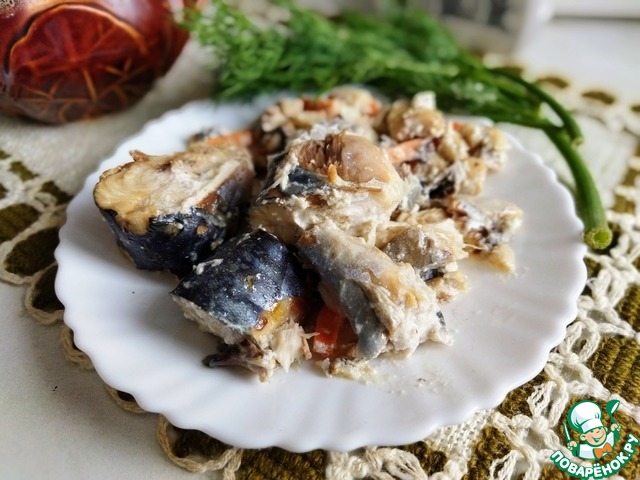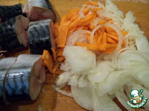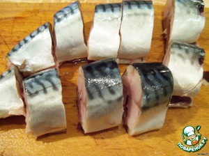 Скумбрию помыть, убрать внутренности и голову. Нарезать небольшими кусочками.