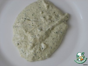 Сливочный сыр перемешиваем с зеленью и измельченным чесноком.