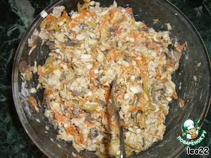 Морковь трём на крупной терке, лук шинкуем полукольцами и всё вместе обжариваем на масле.