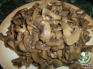 Шампиньоны режем, а затем обжариваем на оливковом или растительном масле.