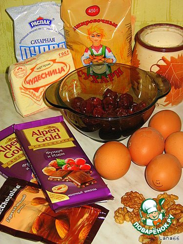 Ингредиенты для «Шоколадно-вишневый пирог с грецкими орехами»: