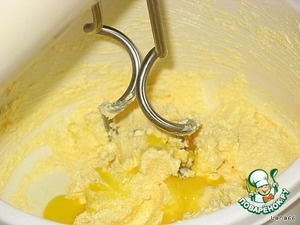 Постепенно добавить желтки, не прекращая взбивать. -