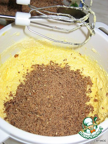 Выложить тертый шоколад в желтково-масляную массу и еще раз взбить.