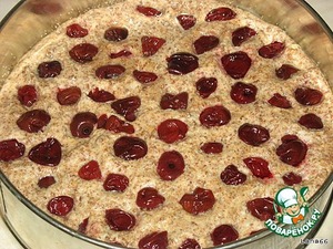 Тесто выложить в форму вместе с вишней. Выпекать на среднем уровне духовки 50 минут.