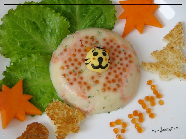 Украшаем листиками салата, тигренком из желточка. Полоски и мордочку я вырезала из нори. Подавать с ГОРЯЧИМИ ГРЕНКАМИ!!! Это ОООчень вкусно!