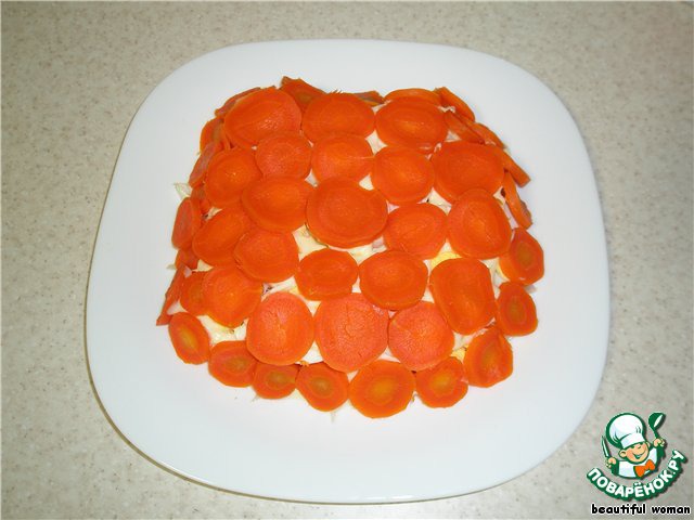 На верх выкладываем кружочки моркови.