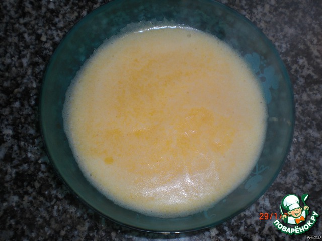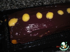 Я приготовила как по рецепту яичный крем - 4 желтка размешать с 6 ст.л. воды и 6 ст.л. сахара, тщательно размешать и, всё время помешивая, варить на небольшом огне до загустения, остудить. Но я думаю, что для экономии яиц вполне подойдёт абрикосовый джем.