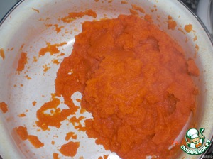Яйца взбить с сахаром, добавить морковь, цедру с половины апельсина, муку, тщательно размешать. Противень застелить бумагой, посыпать немножко мукой, выложить тесто. Выпекать в духовке 180 градусов 15 минут.