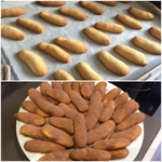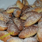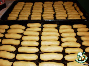 Зажигаем духовку. Пусть разогревается. К сожалению температуру указать не могу. Моя духовка не показывает ее : ( А в это время катаем "колбаски" длиной 3-4см и выкладываем на предварительно смазанные жаровни. Можно даже на фольгу выложить.
