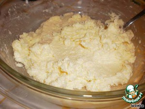 Добавляем к полученной смеси муку и предварительно перетертые яичные желтки