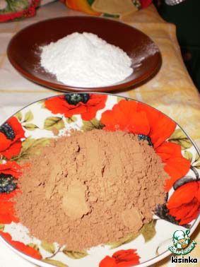 Выпекать нужно минут 30-40. Если честно, то моя духовка справилась с этим быстрее. Когда печенье испеклось, вынимаем его из духовки и выкладываем на блюдо. Даем хорошо остыть. Практически полностью. А в это время готовим сахарную пудру и какао. В идеале нужно практические холодные печенюшки обмокнуть сначала в сахарной пудре, а затем в какао порошке. Скажу честно, что я попробовала так сделать, но плюнула на все и смешала в одной тарелке пудру и какао и обмакивала печение в уже готовой смеси ;).
