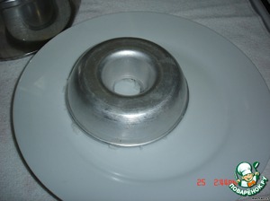 Собираем все ингредиенты на тарелке. Рис плотно укладываем в формочку (если ее нет, можно взять чашку).