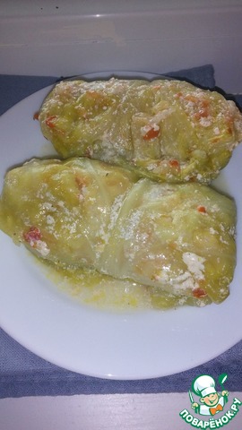 фотоотчет ниже, готовила дважды, первый раз с обычной капустой, второй-использовала пекинскую.Минус у пекинской-нитевидные жилки, но если кушать ножом и вилкой, острый нож их прекрасно разрезает) В планах третья готовка по этому же рецепту