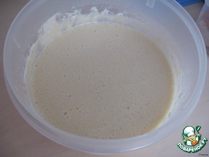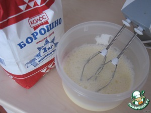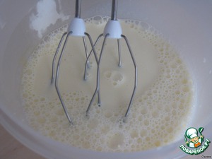 Добавляем молоко, сахар, соду, гашенную уксусом и ванильный сахар и снова взбиваем.