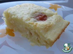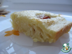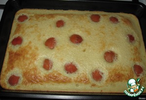 Выливаем тесто в форму. Так как пирожок наш должен получиться невысоким, то лучше брать форму побольше. Ставим выпекаться в разогретую до 200 градусов духовку. Как только пирожок начнет румяниться, уменьшите до 150 градусов. Я на 200 держала 15 минут и еще 10 минут на 150 градусах.