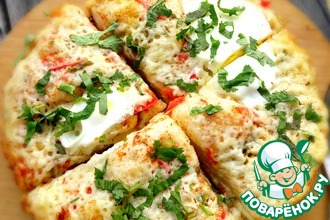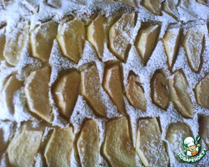 Яблокo почистить от кожуры,порезать на дольки и разложить на тесто (в ряд). И в духовку (200 градусов). Печь 30 минут.