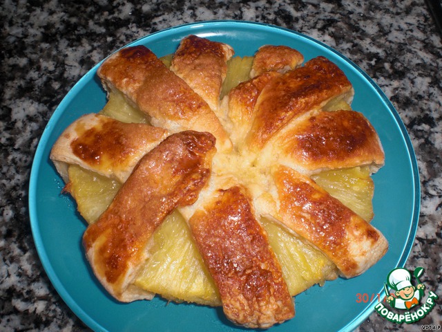 Завалялся дома ананас, они иногда у нас стоят дешевле яблок, и вот захотелось приготовить чего-то печeного. Вот, что получилось.