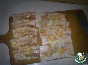 Добавим к салу (бекону) специи и чеснок.