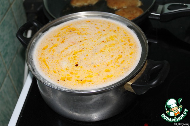 6. Необходимо растворить сырки в воде и желательно без комочков. Для этого очень хорошо подойдет толкучка для картофеля.