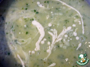 Когда овощи готовы, делаем пюре в блендере или пользуясь миксером, предварительно добавив петрушку. Я добавляю солидное количество, так как суп сам по себе довольно бледный. В пюре вливаем смесь сливок и горчицы, и суп доводим до кипения.