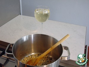 в смеси из сливочного и оливкового масла. Вливаем вино, сколько не жалко, остальное оставляем для повара. То есть для себя, любимой. Надо же жидкость в организме пополнять? Но можно, конечно, и без вина.