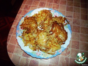 Потом на сковороде разогреваем масло и на среднем огне обжариваем грудки. Сначала обмакиваем в яйцо, потом обваливаем в картошке, потом в горячее масло!