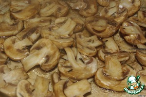 Шампиньоны нарезаем не очень тонкими пластинками. У меня получалось на 4 части.