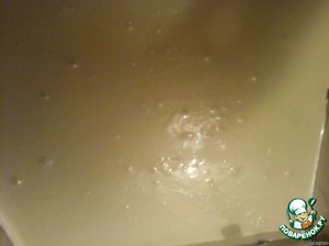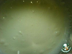 • Добавляем ванилин и выливаем шампанское, потом раст.масло и муку, перемешанную с разрыхлителем.