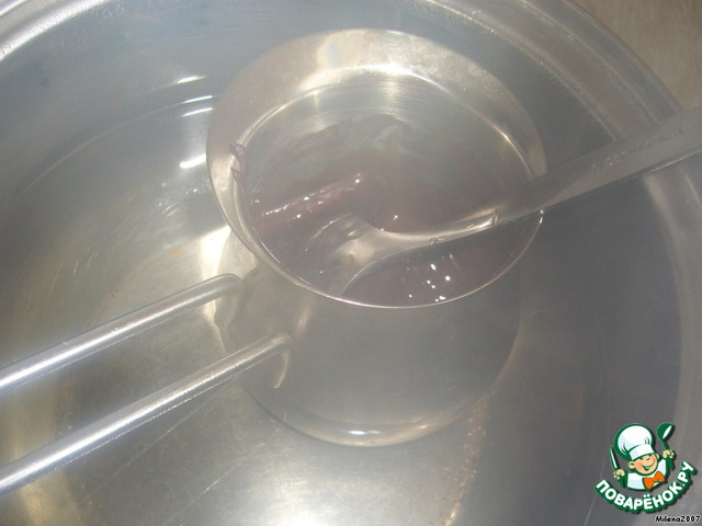Плитку шоколада наломать и выложить в глубокую миску, поставить миску на водяную баню, растопить шоколад.