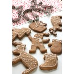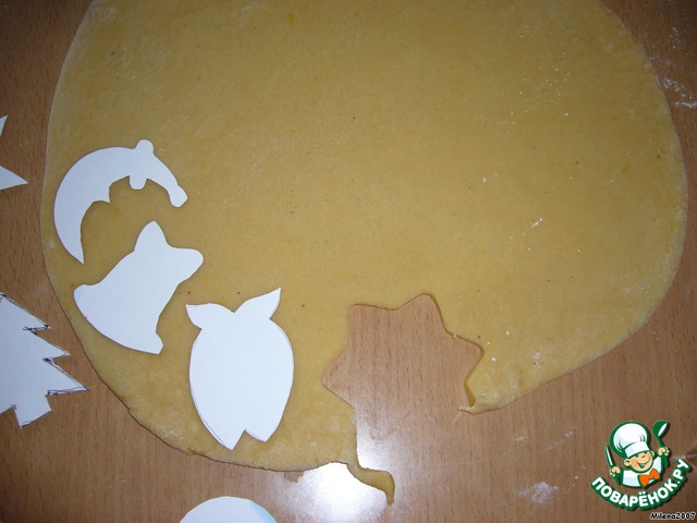 Раскатать тесто, вырезать по трафаретам фигурки. Я тесто тонко раскатала, пряники плохо поднялись и получились тоненькие.