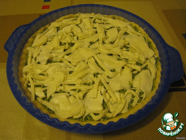 Рвём и выкладываем сверху моцареллу.