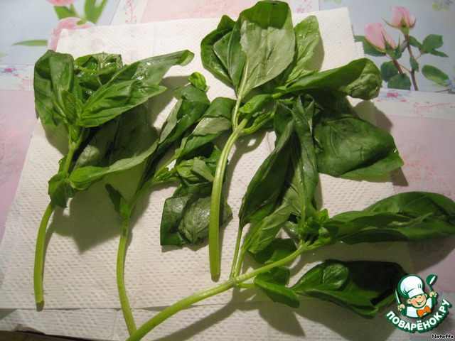 Базилик моем в холодной воде, оставляем сушиться на бумажных салфетках.