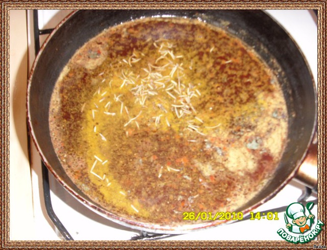 Добавить на сковороду куриный бульон, вино, чеснок, орегано, тимьян, майоран, чабрец и перец и [i] (добавляла вино, вместо бульона-кубик Магги, этих специй не было-заменила на специи-карри, розмарин, базилик, красный перец, куркума)[/i]