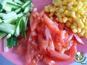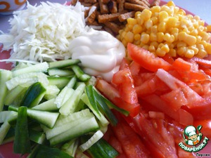 Легкий в приготовлении, но очень вкусный салатик. И навеивает своими красками о теплом лете... Моя семья его очень обожает!