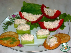 Фаршируем брусочки сельдерея, потом дольки. -