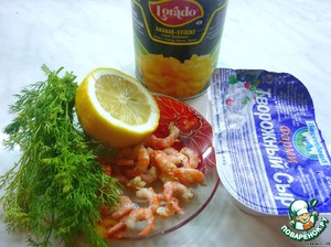 Креветки, ананас и укроп измельчить в блендере. Смешать с сыром, добавить сок лимона и, если захотите, перец. Дайте 5 мин. постоять.