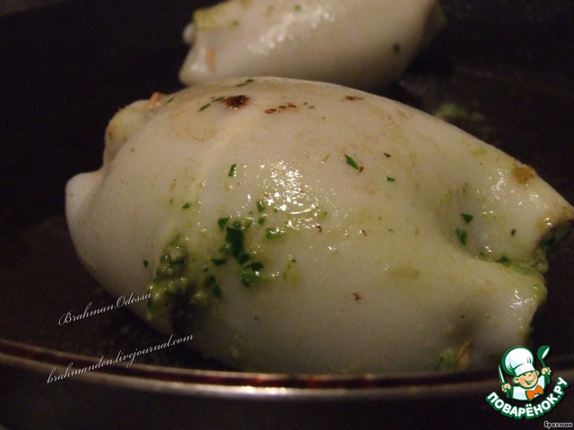 Рецепт «Кальмар с сыром и шпинатной начинкой»: