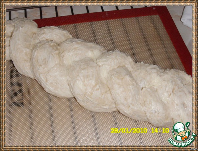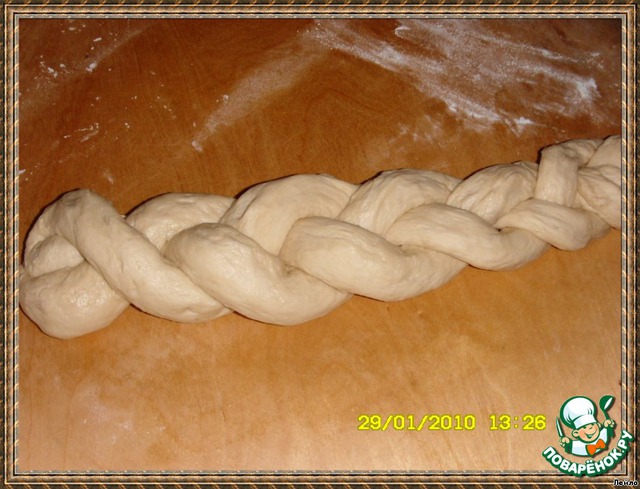 Даем расстояться - 1 час. Сразу кладите в форму, чтобы потом не повредить форму (косу), и так удобнее перед выпечкой.