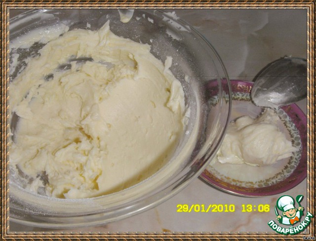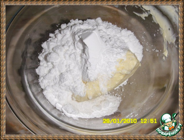Взбить 100 г сливочного масла и 125 г сахарной пудры.