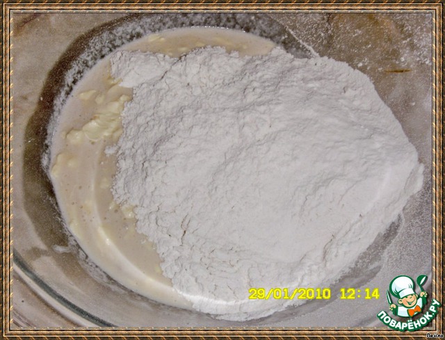 Тесто: 1/2 стакана молока, 100 г размягченного сливочного масла,
