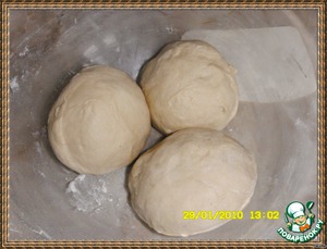 Сразу разделить на 3 равных шарика, поставить на подход (минут на 40).
