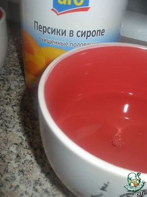 Еще 15 гр желатина замочить для набухания в 100 мл сиропа от консервированных персиков.