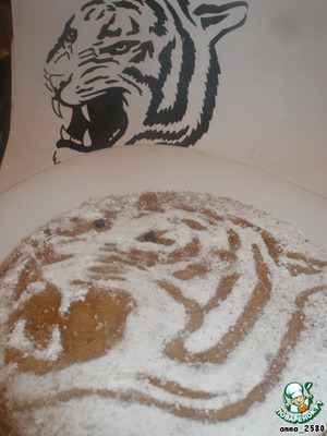(Сначала попробовала сделать трафарет и по нему засыпать белой пудрой - ничего не получилось: когда трафарет убрала, весь рисунок смазался - ничего не понятно... Пришлось переделывать! И тогда решила делать наоборот - засыпать всю поверхность кокосом с сахаром, а уже потом аккуратно "снимать" палочкой пудру для получения рисунка). -