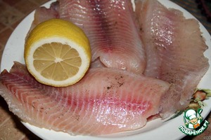 • Филе рыбы натереть солью и перцем, можно и приправой для рыбы. Сбрызнуть соком лимона. И дать постоять минут 20-30.