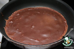делаем блинное тесто из молока, яйца, муки, сахара и какао.