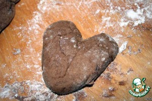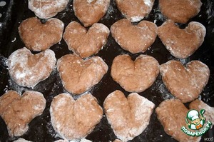 Разделить тесто на небольшие кусочки и слепить сердечки. -