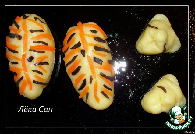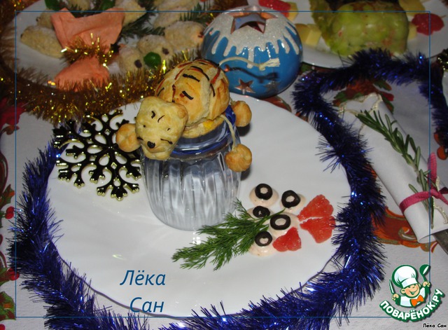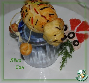 Так хотелось принять участие в этом интересном конкурсе, было много задумок, но к сожалению, из-за нехватки времени реализовать удалось только одну, еще в самом начале января... и почти успеваю ее выставить :)) Праздничная закуска представлена в виде "Тигрули". Это закусочный эклер с мясным наполнением. На конкурс "Gorenje: новогодняя композиция".